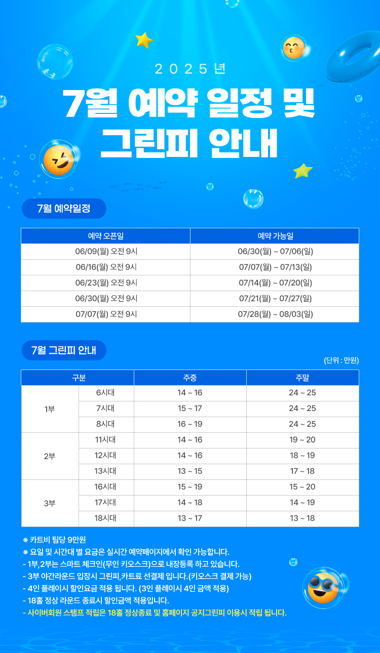 제목7월 예약일정 및 그린피안내 2025-06-10